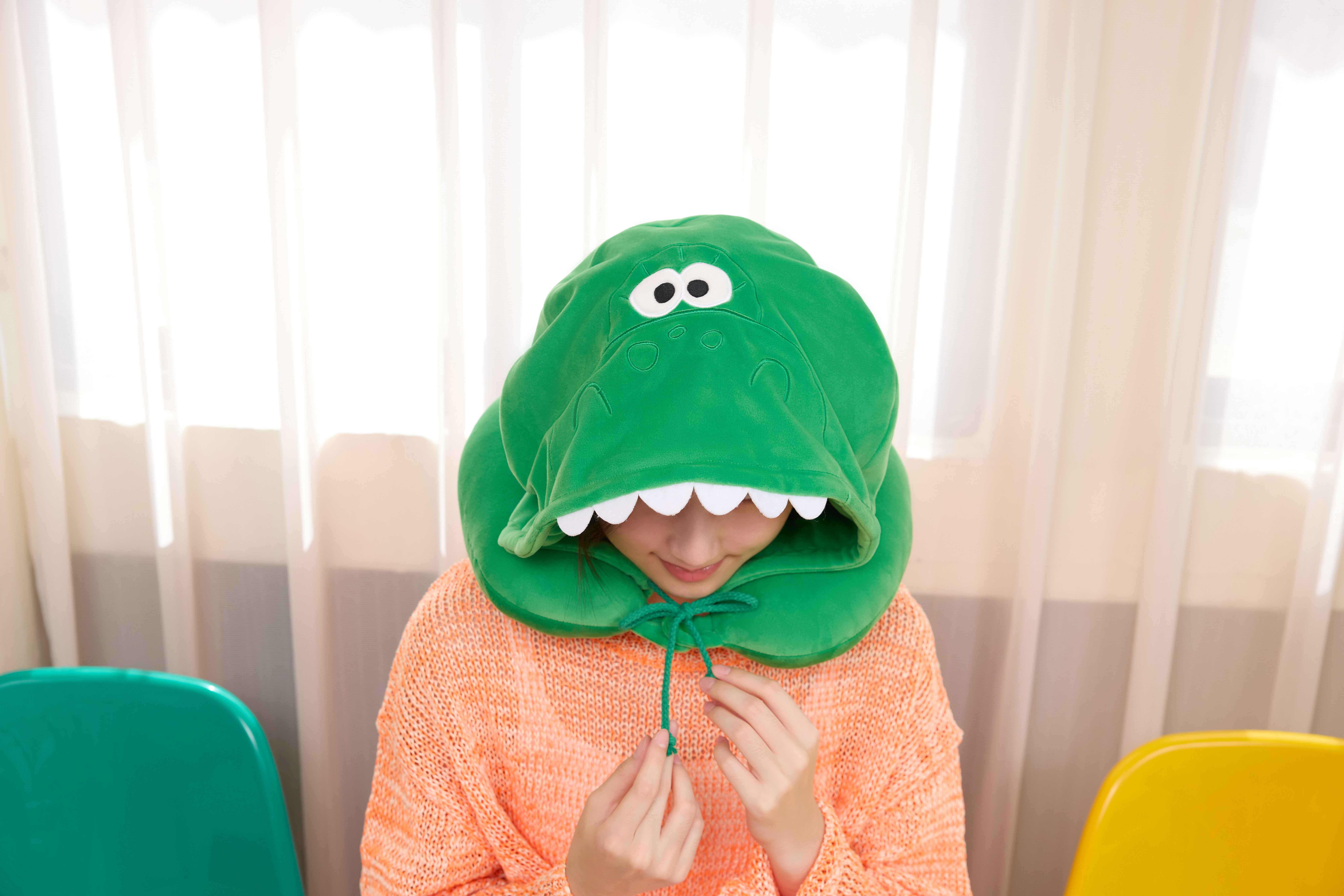 縮繩連帽搭配抱抱龍造型,可愛度瞬間爆表,還能遮光小睡~