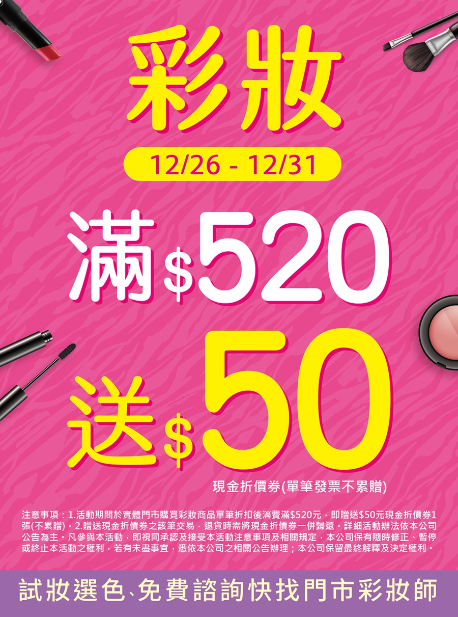 2025/12/26-12/31 【彩妝滿$520送$50】