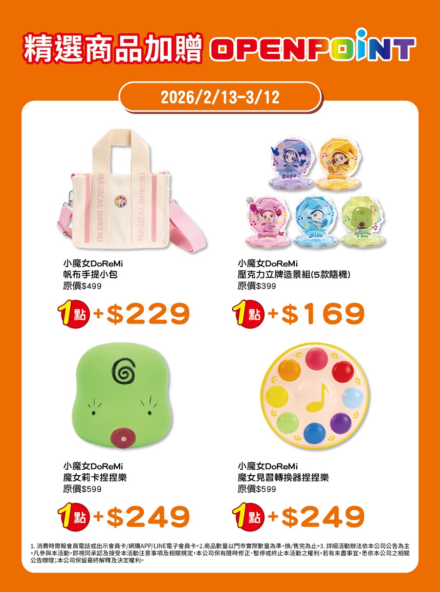 3. 商品數量以門市實際數量為準,換/售完為止。